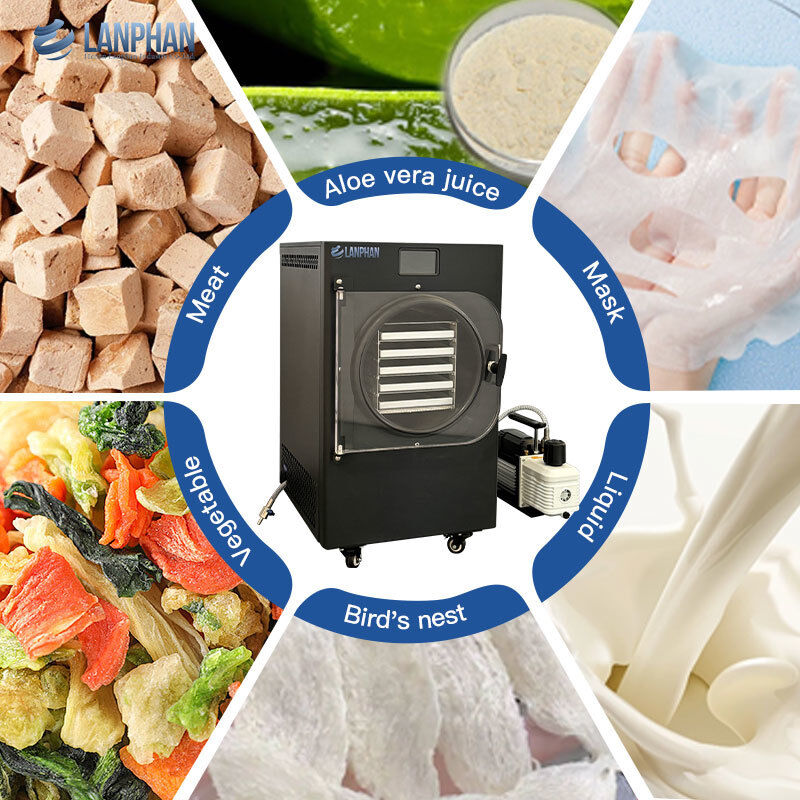 มันถูกใช้อย่างแพร่หลายในการแช่แข็งผลไม้แห้ง ผัก เนื้อ สมุนไพรยา สินค้าด้านสุขภาพ และอื่นๆ การพัฒนาเครื่องแห้งแบบแช่แข็งได้แพร่หลายและตอนนี้มันถูกใช้สําหรับการใช้ในครัวเรือนบางอย่างอาหารและยาที่แห้งแข็งสามารถเก็บรักษาได้ง่ายเป็นเวลานาน, รักษารสชาติ, ค่าอาหาร, และลักษณะเดิม